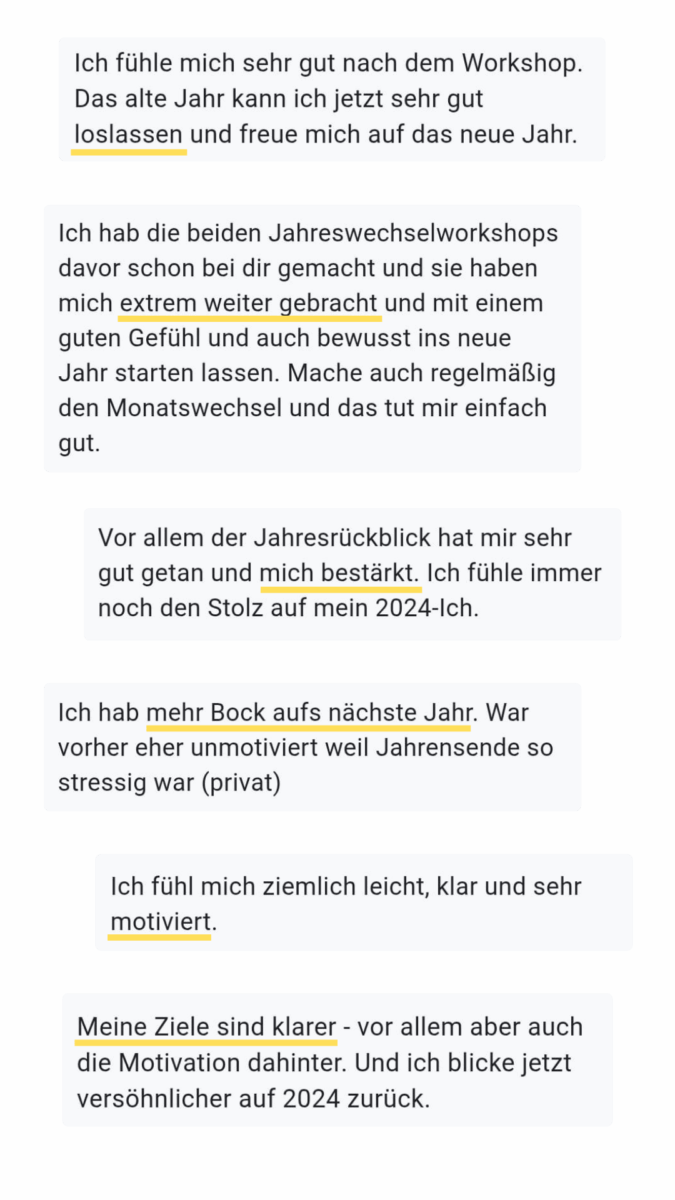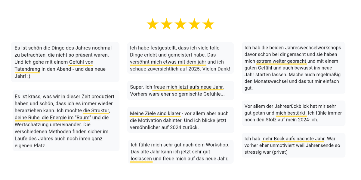 💪 Profitiere von meiner bewährten Methode: Den Jahreswechsel Workshop gebe ich seit 5 Jahren und ich entwickle das Konzept jedes Jahr weiter.