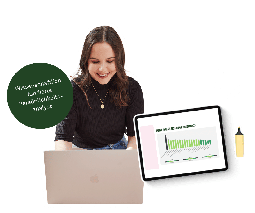 Du bekommst den Zugang zur Innere Motiv-Analyse (IMA©), einer wissenschaftlich fundierten Persönlichkeitsanalyse. Die 200 Fragen durchläufst du ganz gemütlich online. Das dauert ca. 30 Minuten und am Ende steht dein individuelles Motivprofil.